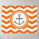 Orange Chevron Zigzag Pattern Anchor Smile Poster