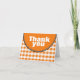 These classic, all purpose thank you cards are designed with "thank you" in bold white letters in an orange semi-circle over an orange & white gingham pattern. This pattern is a time-honoured choice for Baby Showers & Birthdays.