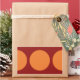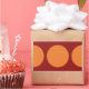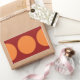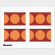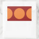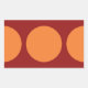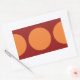 This bold geometric pattern features a large orange dot in the centre and two orange half circles on the edges of a red background.