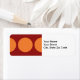 This bold geometric pattern features a large orange dot in the centre and two orange half circles on the edges of a red background.