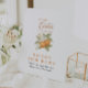 Encourage a library full of love with this charming “A Little Cutie Is On the Way” baby shower Books for Baby sign! Featuring soft watercolor oranges, delicate blossoms, and leafy greenery, this citrus themed sign coordinates perfectly with the rest of your event decor.