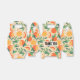 A tiny favour box with a retro vibe. A pattern composed of sliced oranges, whole oranges, green leaves and white blossoms.