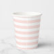 Citrus and floral arrangements paper cup with white and pink striped background, white arch and citrus foliage arrangements.