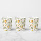 Citrus and floral arrangements paper cup with white and pink striped background.