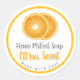 These stickers are labels to be placed on the packaging of citrus scented soap which has been made at home.