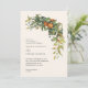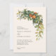 Orange citrus stylish watercolor floral and foliage wedding invitation card. Beautiful handprinted floral watercolors and modern script text. Modern on trend design