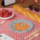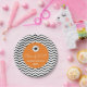This graduation plate features trendy black zigzag pattern for the background accented with an orange circle in the centre. Popular hand lettered style text reads: Class of 2017 with custom text for the name of the graduating senior and their school. A graduation hat above the text adds a small accent to the fun grad party plate. The orange circle colour is custom and can be changed to any available colour by choosing the customise it button.