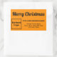 Merry Christmas! One of the most celebrated holidays of the year. It is also one of the best seasons to advertise your business. Rectangle shape sticker with Merry Christmas greeting, your business name and other information of your business. You can use it as accessory of your product packaging material to promote your product brand name. You can also use it as marketing material to advertise your business to customers or clients. Customisable sticker that you can use to build brand name awareness. You can use it in December or Christmas in July. Design colours are black texts on orange colour background. To customise this sticker, upload your business logo, type your business name, address and phone number. After uploading logo and typing texts, please check the appearance. If the appearance is pleasing to you, you can place your order now. If you need to resize and move the logo and texts to fit on this sticker, please change in the design tool. You can also make other changes in the design tool according to the appearance of this sticker that you prefer such as changing the background colour, font colour and font style. Merry Christmas! Wishing you more sales this holiday.