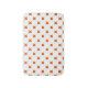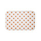 Orange cross stitches on white bath mat