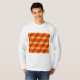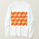 The design features an interlocking pattern of bright orange cubes. It could be seen as reminiscent of the art of M.C. Escher, but it simply uses basic geometric forms to achieve an attractive and elegant effect. It looks like an endless staircase in various shades of orange.