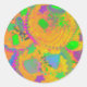 A pile of brightly coloured cupcakes decorated with marshmallows, chocolate stars, hearts, jelly sweets. sprinkles and glitter - ready to eat! Sticker with an orange, blue, pink, yellow, green, purple and silver customisable design for you to personalise with your own text, pictures and ideas .An original photograph stylised using digital techniques by Jess Perry.