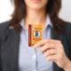 This vibrant orange company ID badge is designed for professional identification and security. Featuring a dedicated space for a company logo, employee photo, and essential details like name, job title, and ID number, it ensures easy recognition and access control. The reverse side includes a return-to address and space for additional information, making it ideal for lost and found situations. Its bold color and clear layout make it a functional and stylish accessory for any business, promoting a secure and organized work environment.