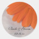Customise these elegant Orange Daisy and White Satin Wedding Envelope Seals with the personal names of the bride and groom and their marriage ceremony date. Pair with the matching Wedding Invitations, Save the Date Announcements or Greeting Cards to create a coordinated nuptial stationery set. These classy custom flowery nuptial stickers feature a close up floral photograph of an orange gerber daisy flower blossom on a white satin background.