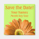 This stylised orange daisy flower "save the date" magnet makes the perfect accent for your wedding, shower or party invitations. Click on "customise it" to select a different background colour or add text.