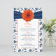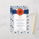 Orange Daisy Navy Blue Damask Wedding Menu Card