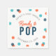 Confetti baby shower "Ready to Pop" napkin featuring confetti in orange, blue and dark blue.