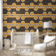 This design features contemporary geometric circles and horizontal lines in shades of ivory, and yellow orange on a dark brown backdrop. It's an ornate, elegant, yet funky hipster pattern, perfect for the artistic interior designer, the artsy fashionista, the trendy hipster, lovers of vintage retro, nouveau deco art, or abstract digital geometric motifs. It's available across a range of modern home decor items, ideal for decorating a master or children's bedroom, kitchen, nursery, living or family room, woman's cave, college dorm, condo, studio, or apartment.