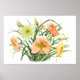 An original modern painting of a bouquet of coral peach, yellow and orange daylilies. Painted from flowers grown in the artist's own garden - this is not a vintage reproduction or photograph!