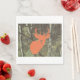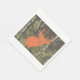 Birthday party napkins featuring an illustration of an orange deer head over a camouflage background. Personalise the birthday number.