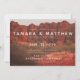 Southwestern themed invitation suite featuring red rocks and grasses behind white text. Inspire your guests to excitement with bold desert scenery.