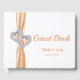 Elegant diamond hearts with a orange ribbon decorate this guestbook. Wedding guest books are fun for both the couple and their celebrants. Invite attendees to leave you well-wishes at your reception, and you're guaranteed to have a keepsake to look back on for years to come. Plus, your guests will get to leave their mark on your event, not to mention put in writing whatever they didn't have a chance to express in person on the big day. Personalise the book by changing the text in the fields provided. You can change font style, size, and colour.