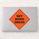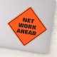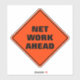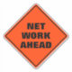 Funny classic orange diamond caution road sign warns of net work ahead in a thick black sans serif font, which is a warning sign for the road work sign that will be coming up next.