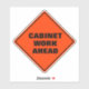 Funny classic orange diamond caution road sign warns of cabinet work ahead in a thick black sans serif font. Perfect for the woodworker, carpenter, cabinet maker hobbyist.