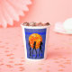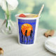 An orange disco ball with dancers around it. This design looks really effective on these Paper Cups