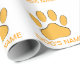 Cartoon orange dog pawprints. Customised wrapping paper for dog's gifts.