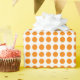 A wrapping paper designed with an orange dot pattern on a white background. Customize the white background among other options.