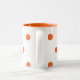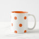 The mug is bright white, well weighted and the orange dots match the orange interior perfectly. It makes me smile every time I see it. I'm getting the other three matching ones for a complete set. The printing turned out better than pictured and orange things are actually hard to find.