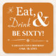 Orange Eat Drink and Be Sixty Retro 60th Birthday Square Paper Coaster