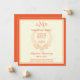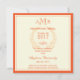 This formal square elegant graduation announcement features an orange border and monogram initials at the top. The ornate calligraphy style embellishment in the centre and laurel crest watermark gives it a touch of class. Personalise these announcements with your graduation information. There is also plenty of room on the back for more information. This design works best with the square cardstock, for rectangle or rounded corners please see the following: