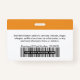 Easily personalise this Custom Horizontal Employee Name Badge with Photo, Scan Bar Code or Qr code and business logo. A simple business design in tangerine orange and white colours fully customisable in front and back sizes, sans-serif basic and modern fonts and a professional and clear look. These standard security id name tags badges are avaiable with lanyard, metal clip or with retractable. You can personalise your id badge cards choosing any background colour and any font style with Graphic Design editor by clicking on customise further. No minimum order.