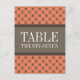 Trendy and chic Fancy Lattice Table Number Postcard featuring a stylish circle and diamond studded pattern over a vibrant nectarine orange background with a broad two-toned brown border. This elegant table card is perfect for a modern wedding. Easy to customise, simply add the appropriate table number(s) in the text field provided. Click "Customise It" to find more personalisation options.