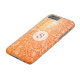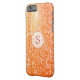Stylish Vintage Orange Iphone 6 Plus Case Design with Elegant Floral line art illustration texture with white and Orange Custom Personalised Monogram Initial in a Circle. The design is feminine so it is pefect for girls who likes modern vintege look.