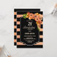 Orange Floral Black Striped 21st Birthday Dinner Invitation