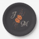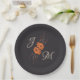 Orange Floral Elegant Minimal Monogram Wedding Paper Plate
