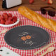 Introducing our minimalist round plate, a refined reflection of your gothic wedding aesthetic. A small bouquet in orange hues graces the plate, infusing a touch of warmth. At the heart of the design, your monograms elegantly rest, capturing the essence of your union. This plate embodies understated elegance, a visual reminder of the love that surrounds your celebration, making every dining moment a delightful connection to your special day.