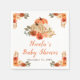 Rustic baby shower napkins with orange and beige pumpkins and floral flower arrangements. Perfect for an autumn fall baby shower. The words can be changed to suit your own details or requirements