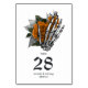 Whimsical vintage floral skull gothic wedding table number in accents of orange customisable to your event specifics.