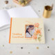 Beautiful orange flowers grace this wedding guest book and enhance your favourite photo!