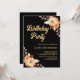 Orange Flower Botanical Gold Black Birthday Invitation