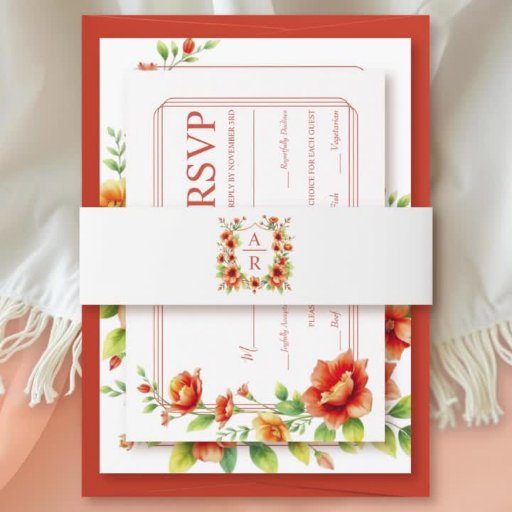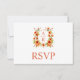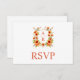 Orange flower crest and QR code floral wedding RSVP Card. More than just a response card, this is a miniature work of art, designed to perfectly complement your wedding's overall aesthetic. The focal point is a beautifully crafted floral crest, intertwined with your initials, instantly personalising the card. Graceful blooms unfold in rich, sunset-inspired shades of orange, accented by the green leaves. The design embodies both romance and sophistication, with delicate details and a timeless appeal. The back of the card features a convenient QR code, allowing your guests to RSVP online with ease, streamlining the planning process.