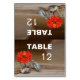 Fold the reception table number card manually following the line. Each card should have a new number, ordered separately. Do not consider the group order; order one card at a time. Enjoy the rustic wedding look with a bright orange flower in a glass Mason jar partially filled with small rocks, placed on a rustic wooden table. This decoration is ideal for any season. Personalise this template with the "Table" and "Number", and make further edits as needed.