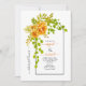 Orange watercolor flowers and arch fall wedding rehearsal dinner invitation. This lovely wedding design features an arch frame with orange cactus flowers and green leaves on the upper left corner. The name is in script typography.