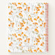 Botanical pattern with orange flowers and green leafy branches. This notebook can be personalised to add a name or subject on the cover.