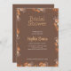 This invitation is more than just a piece of stationery; it's a visual celebration of love and the timeless allure of nature. The brown backdrop, adorned with the intricate border of dainty orange flowers and greenery, invites guests into a world of contemporary charm and the promise of new beginnings. It sets the perfect tone for a bridal shower filled with laughter, cherished moments, and the anticipation of a beautiful journey together.