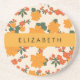 Orange Flowers, Pattern Of Flowers, Your Name Coaster
