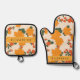 Orange Flowers, Pattern Of Flowers, Your Name Oven Mitt & Pot Holder Set